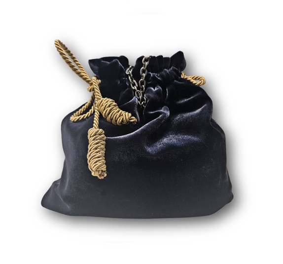 The wrist bag, with a Japanese-style knot handle, has a triangular shape and is reminiscent of the packages made from pieces of fabric by the Japanese according to the ancient art known as furoshiki, with a knot at the top. This delightful handbag is a model to be carried by hand or on the wrist which, despite its minimalism, stands out. It is made of cashmere-patterned velvet with golden shades and a black inner lining in shiny crepe cady, reversible for use on both sides. Handcrafted and finished with top quality materials. Compact, simple, and refined, suitable for elegant evenings.