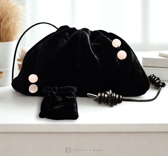 La pochette in velluto nero fa la sua prima apparizione nel XIX secolo, quando venivano usate dalle donne dell’alta società per contenere oggetti essenziali e come accessorio di moda. Successivamente si sono evolute fino a diventare accessori eleganti. Il velluto era un materiale popolare per le borse a partire dal periodo successivo al 1500 in Italia. Oggi, la pochette, o clutch bag (“Clutch“, dall’inglese, nel senso di presa), è un accessorio versatile, utilizzato per occasioni eleganti, per contenere solo l’essenziale, come telefonino, chiavi e l’immancabile rossetto. La pochette in velluto nera è perfetta per serate eleganti o eventi formali. Tradizionalmente, La pochette, o clutch bag, si tiene sotto il braccio o semplicemente con la mano sinistra, lasciando la mano destra libera.; nell’evoluzione moderna, questo tipo di borsa viene portata anche con una tracolla o con un manico da polso. Questa deliziosa pochette in velluto nero, contenente, all’ interno, un grazioso portamonete, è un modello borsa da portare a mano o a tracolla. E’ realizzata in velluto di seta, con chiusura a coulisse in pelle nera (che funge anche da tracolla). Confezionata e rifinita a mano con materiali di prima qualità. Compatta, semplice e raffinata, adatta per serate eleganti.
