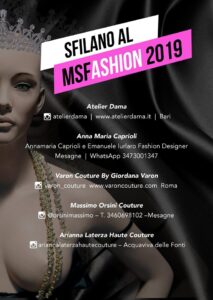 In occasione dell’edizione che si svolgerà a Mesagne (BR), il 20 luglio, presenterò in esclusiva, nel corso della sfilata, alcune mie creazioni. I capi sono confezionati e rifiniti completamente a mano, nel solco della migliore tradizione dell’alta sartoria artigianale italiana. Prossimamente, saranno visibili sul mio portfolio.